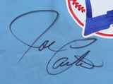 Majestic MLB Style jersey with everything sewn on, size 48. Hand-signed by Joe Carter (Toronto Blue Jays). Please note, the hologram has a slight tear / see photos. Joe Carter hit a Walk-off Home Run to win the 1993 World Series for the Blue Jays, their second consecutive championship. Carter is one of only two players to end a World Series with a home run, the other being Bill Mazeroski. The autograph(s) includes an official James Spence Authentication (JSA) hologram for authenticity purposes.Authentication: JSA Hologram