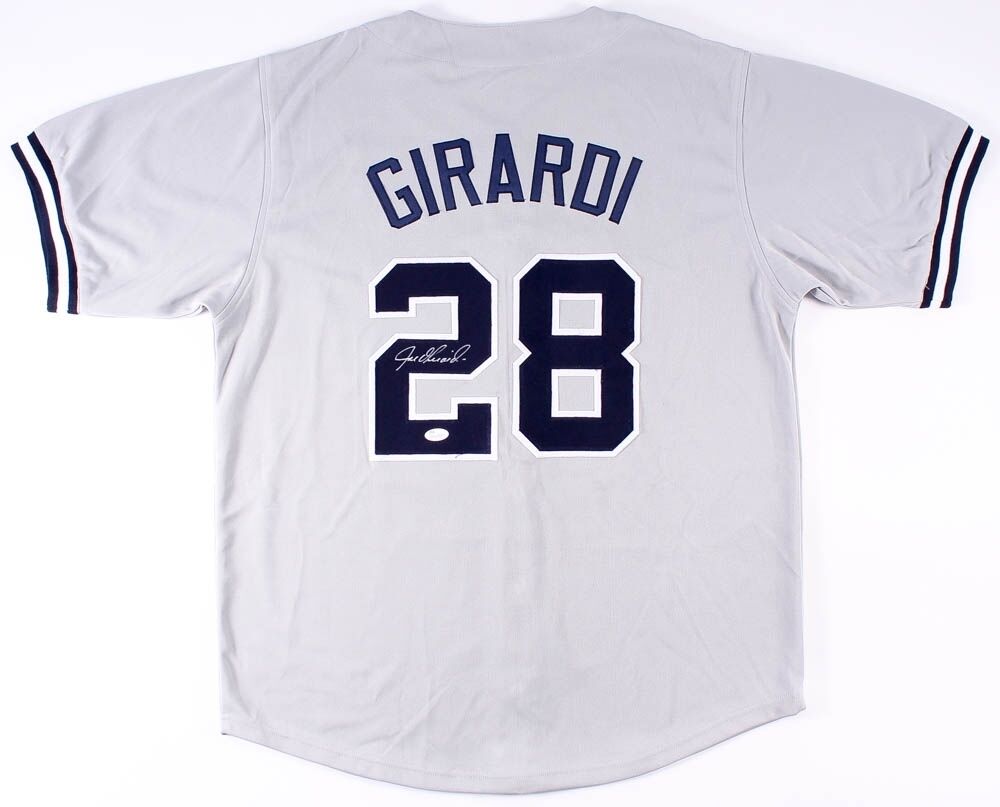 Custom on-field style jersey. Everything is sewn on, size XL. Hand-signed in silver paint pen by Joe Girardi. The autograph includes an official James Spence Authentication (JSA) hologram and matching COA for authenticity purposes. The signing of this item was witnessed by JSA.Authentication: JSA COA