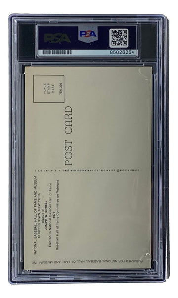 Featured is a Joe Sewell (Cleveland) signed 4x6 Hall Of Fame plaque card. This card has been hand signed by Sewell and has been authenticated and encapsulated by PSA/DNA. This card would make a great addition to any sports memorabilia collection!. SPECIFICATIONS Autographed By: Joe Sewell Team: Cleveland Sport: Baseball Authentication: Professional Sports Authenticator (PSA)