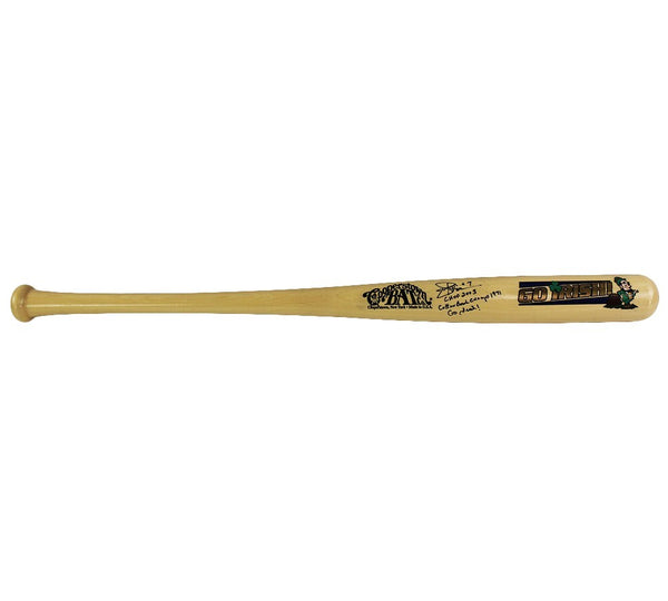 A Notre Dame Custom Cooperstown Go Irish Blonde Bat hand signed by Joe Theismann. The item and signature are in excellent condition. In addition to signing his name, Joe inscribed "CHPF 2003", "Cotton Bowl Champs 1971", and "Go Irish" on the item. Joe led the Washington Redskins to victory in Super Bowl XVII, was named NFL MVP in 1983, earned two Pro Bowl selections, and holds franchise records for most career passing yards (25,206) and completions (2,044). AUTHENTICATION: The item is accompanied by a JSA Certificate of Authenticity - JSA Serial Numbered Hologram -