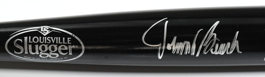 This is a hand autograph of Johnny Bench on a Louisville Slugger Pro Black Bat. This item has a Fanatics Authentication, which comes with a Fanatics numbered hologram and a QR code for verification. You can view this item on the Fanatics website. It was signed either at a public autograph appearance or a private signing. This is a stock photo of the item. Although you may not receive this exact item, the item you receive is virtually identical and brand new in great shape. This is a hand autograph of Johnny Bench on a Louisville Slugger Pro Black Bat. This item has a Fanatics Authentication, which comes with a Fanatics numbered hologram and a QR code for verification. You can view this item on the Fanatics website. It was signed either at a public autograph appearance or a private signing. This is a stock photo of the item. Although you may not receive this exact item, the item you receive is virtually identical and brand new in great shape.