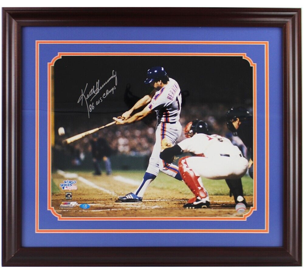 A New York Mets Framed 16x20 MLB Photo hand signed by Keith Hernandez. In addition to signing his name, Keith also inscribed "86 WS Champs" on the item. The item and signature are in excellent condition. The frame measures approximately 30" x 26". Keith is a former professional baseball player who spent the majority of his career with the St. Louis Cardinals and New York Mets. He is a 5x All Star, 2x World Series Champion, NL MVP and a multi Gold Glove and Silver Slugger Award winner. AUTHENTICATION: The item is accompanied by a MAB Celebrity Serial Numbered Hologram.