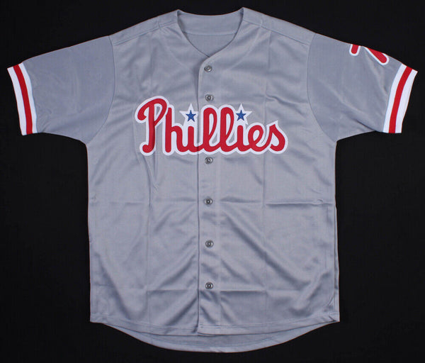 Custom on-field style jersey. Everything is sewn on, size XL. Hand-signed in black felt-tip pen by Maikel Franco. The lot / autograph(s) includes an official James Spence Authentication (JSA) hologram and matching COA for authenticity purposes. Also includes a proof picture from the signing.Authentication: JSA COA