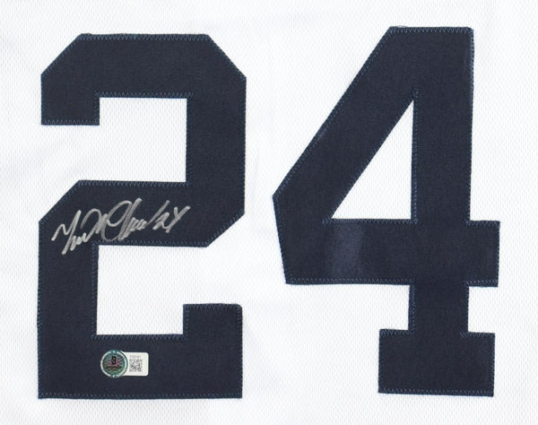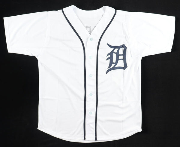 Custom on-field style jersey. Everything is sewn on, size XL. Has been hand-signed in silver paint pen by Miguel Cabrera (Detroit Tigers). The lot / autograph(s) includes an official Beckett Authentication Services serially-numbered scannable hologram and QR Code card for authenticity purposes. The signing of this item was witnessed by Beckett.Authentication: Beckett Scannable QR Code card