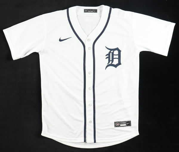 Nike jersey. Everything is sewn on, size adult Large. Has been hand-signed in silver paint pen by Miguel Cabrera (Detroit Tigers). The lot / autograph(s) includes an official James Spence Authentication (JSA) serially-numbered scannable hologram and QR Code card for authenticity purposes. The signing of this item was witnessed by JSA.Authentication: JSA Scannable Hologram with QR Code card