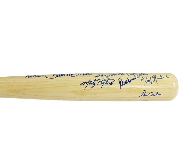A Philadelphia Phillies 1980's Cardiac Kids Blonde/Red MLB Bat hand signed by 23 1980's World Series Champions including Mike Schmidt, Steve Carlton, Pete Rose, Bob Boone, Keith Moreland, Manny Trillo, Dallas Green, Greg Luzinski, Bake McBride, Ozzie Virgil. The item and signatures are in excellent condition. AUTHENTICATION: The item is accompanied by a JSA Letter of Authenticity - JSA Serial Numbered and Databased Hologram.