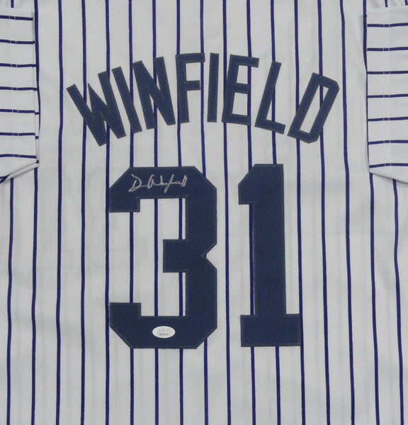 custom replica jersey of New York Yankees Hall of Famer DAVE WINFIELD. This jersey is signed with Silver paint pen. This jersey is size XL has all letters and numbers sewn in. This item was signed at a public signing with us and would make a great addition to any Yankees collection. This item is guaranteed to be 100% authentic and will include a COA from JSA Authentication with matching serial numbers.