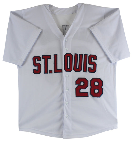 This Autographed White Pro Style Jersey has been Personally Signed by Nolan Arenado of the St. Louis Cardinals. This item is 100% Authentic to include a Certificate of Authenticity (COA) / hologram by JSA. We conducted an autograph signing with Nolan Arenado where multiples of the same item were signed. While the photographs are representative of this item, the size, placement and strength of the signature may vary. Each item is hand signed, therefore, each autograph is unique. This item can be verified through JSA. This is a X-Large sized, non-branded, custom-stitched Jersey.