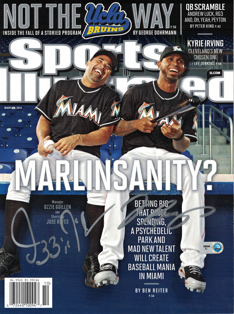 Ozzie Guillen & Jose Reyes Signed Miami Marlins Sports Illustrated MLB 24413 This is a Sports Illustrated magazine issue from March 5th 2012 that was personally autographed by both Ozzie Guillen and Jose Reyes. This magazine includes a MLB authentic hologram and a certificate of authenticity from Denver Autographs.
