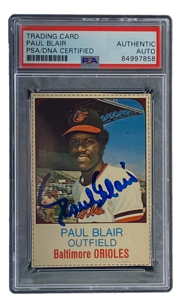 Featured is a Paul Blair Baltimore Orioles signed 1975 Hostess #12 trading card. This card has been hand signed by Blair and has been authenticated and encapsulated by PSA. This card would make a great addition to any sports memorabilia collection! SPECIFICATIONS Autographed By: Paul Blair Team: Sport: Baseball Authentication: Professional Sports Authenticator (PSA)