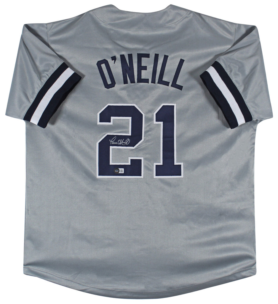 This Autographed Grey Pro Style Jersey has been Personally Signed by Paul O'Neill of the New York Yankees. This item is 100% Authentic to include a hologram by Beckett Authentication Services. This item will come with an affixed Beckett Authentication Services (BAS) authentication sticker, which includes a scannable QR code to verify authenticity. Please note that Beckett no longer provides serial-numbered COA cards, and the attached BAS sticker will serve as the complete authentication for this item. This is a BAS Witnessed Protection Program item which means a Beckett Authentication Service representative was present when this item was being signed. We conducted an autograph signing with Paul O'Neill where multiples of the same item were signed. While the photographs are representative of this item, the size, placement and strength of the signature may vary. Each item is hand signed, therefore, each autograph is unique. This item can be verified through BAS Witnessed. This is a X-Large sized, non-branded, custom-stitched Jersey.