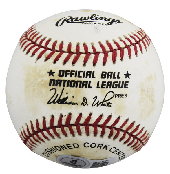 This Autographed William White Baseball has been Personally Signed by Mike Schmidt of the Philladelphia Phillies. This item is 100% Authentic to include a hologram by Beckett Authentication Services. This item will come with an affixed Beckett Authentication Services (BAS) authentication sticker, which includes a scannable QR code to verify authenticity. Please note that Beckett no longer provides serial-numbered COA cards, and the attached BAS sticker will serve as the complete authentication for this item. The authenticity can be verified on Beckett Authentication Services website.
