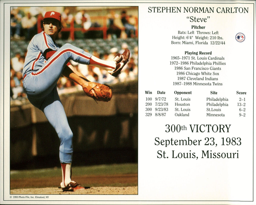 Phillies Steve Carlton 8x10 PhotoFile 300th Victory Photo Un-signed