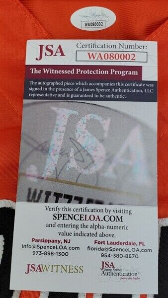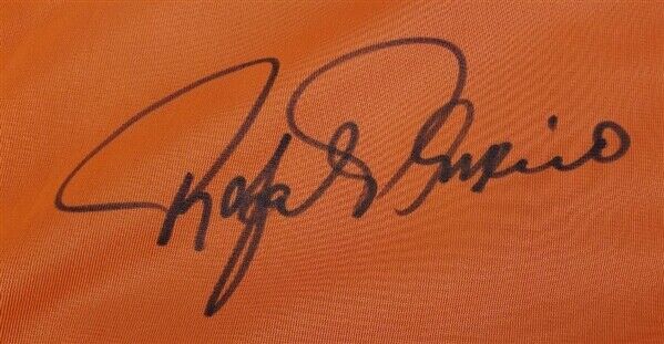 This autographed custom on-field style adult XL jersey has been personally hand-signed by Rafael Palmeiro of the Baltimore Orioles.This autograph is certified by James Spence Authentication's (JSA) Witnessed Protection Program. That means that a JSA representative was present when this item was signed. It comes with the numbered hologram and matching Certificate of Authenticity.Check out all the items in our Friendly Confines Collectibles store, Thanks for looking.Custom on-field style jerseys are a more affordable option for autograph seekers. These jerseys do not have any brand name or tags and are made in the Philippines. They feature stitched on names and numbers and are made to look very similar to the on-field jerseys that the players wear. These custom jerseys are very commonly used in the memorabilia industry.