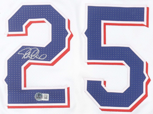 Authentic Nike jersey with everything sewn on, size 44. Has been hand-signed by Rafael Palmeiro (Texas Rangers).The autograph includes an official Beckett Authentication Services serially numbered hologram and QR Code card for authenticity purposes. The signing of this item was witnessed by Beckett.Authentication: Beckett Hologram with QR Code card