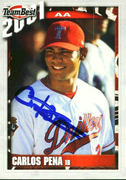This is a 2001 Team Best RC #69 Authentic Signed Card that has been Personally Signed & Autographed by Carlos Pena of the Tampa Bay Rays. This item is 100% Authentic to include a Certificate of Authenticity (COA) by We.We offers a 100% Lifetime Guarantee on all Autographed & Signed Tampa Bay Rays Carlos Pena memorabilia.