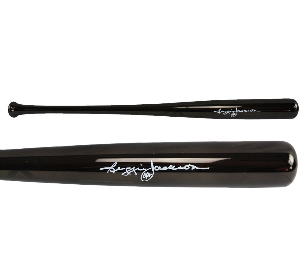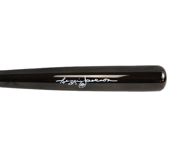 An Oakland Athletics Rawlings Black Chrome MLB Bat hand signed by Reggie Jackson. The item and signature are in excellent condition. Reggie, nicknamed "Mr. October" for his post-season heroics, is a 14-time All-Star, 5-time World Series Champion, and the 1973 AL MVP. He finished his career with 563 homeruns and an induction into the Hall of Fame in 1993. AUTHENTICATION: The item is accompanied by a Beckett Serial Numbered and Databased Hologram