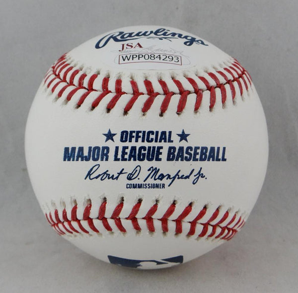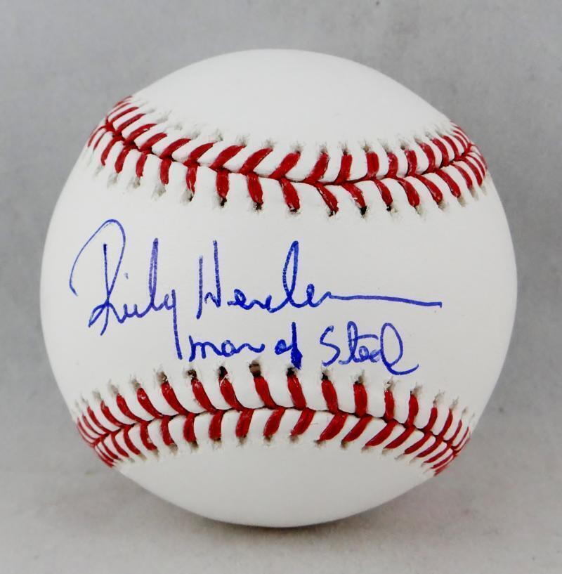 Rickey Henderson Autographed Rawlings OML Baseball w/ Man of Steal -JSA Auth This is a Hand Autographed Baseball of Rickey Henderson on a Rawlings Official Game Ball Major League Baseball and inscribed with Man of Steal. This item has a James Spence Witness Authentication, which comes with a JSA #'ed sticker and a matching JSA certificate of authenticity. You can view this item on the SpenceLOA website. It was signed either at a public autograph appearance or a Private Signing. This is a stock photo of the item. Although you may not receive this exact item, the item you receive is virtually identical and brand new in great shape.