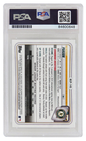 Robert Puason Signed Oakland A's 2020 Topps Bowman Chrome baseball rookie card #BCP-145. The card has been authenticated and encapsulated by PSA/DNA and the number can be verified online. The image of the item is a stock photo, as we may have multiples of the item in stock. The Slabbed Card you will receive will be of the card described. (Same grade, Same authentication) You may or may not receive the exact PSA serial number on the slab label shown in image.