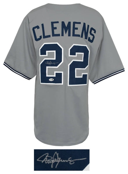 Roger Clemens signed grey custom baseball jersey. Item comes with a JSA (James Spence Authentication) tamper evident numbered sticker and matching Certificate of Authenticity which can be verified online.