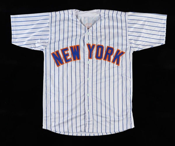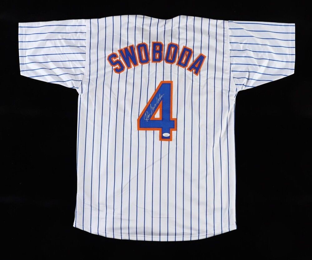 This autographed custom on-field style adult XL jersey has been personally hand-signed by Ron Swoboda of the New York Mets. In Game 4 of the 1969 World Series, Swoboda, not known for his fielding, made a spectacular catch of a ball hit by Brooks Robinson in the ninth inning to stop an Orioles rally. The Mets won the game 2-1 in ten innings, and subsequently, the World Series. For the World Series, Swoboda batted .400. His only RBI was the game winner of the fifth and final game.The autograph includes an official James Spence Authentication (JSA) hologram and matching COA for authenticity purposes. The signing of this item was witnessed by JSA.Authentication: JSA COACustom on-field style jerseys are a more affordable option for autograph seekers. These jerseys do not have any brand name or tags and are made in the Philippines. They feature stitched on names and numbers and are made to look very similar to the on-field jerseys that the players wear. These custom jerseys are very commonly used in the memorabilia industry.