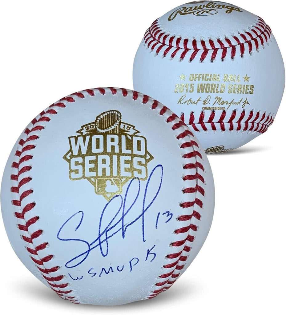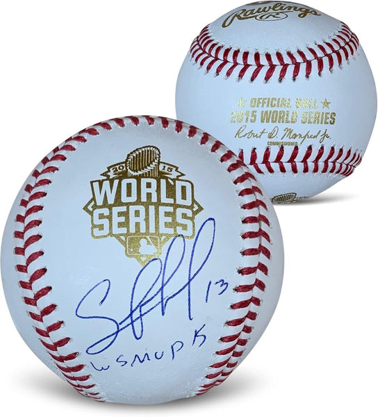 Salvador Perez has autographed this official 2015 World Series baseball and written WS MVP 15. Autograph was witnessed and authenticated by Beckett Authentication Services (BAS). Simply scan the QR code hologram on your item to verify authenticity on their site. 100% authentic. A UV display case is included.