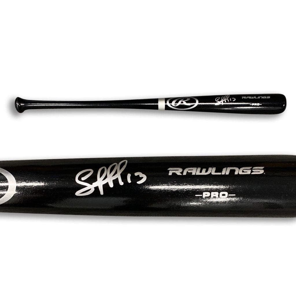 Elevate your baseball memorabilia collection with this Rawlings 34" black baseball bat personally autographed by Salvador Perez. A standout piece for any Kansas City Royals fan this bat features Perez's authentic signature and includes a Beckett Certificate of Authenticity (COA) for guaranteed legitimacy. The sleek black design and premium craftsmanship make it a perfect display item for your home office or fan cave. Celebrate the incredible career of one of MLB's finest catchers with this must-have collectible!
