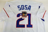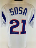 This autographed jersey has been personally hand-signed by Sammy Sosa of the Chicago Cubs.This autograph is certified by James Spence Authentication (JSA). It comes with the numbered hologram and matching Certificate of Authenticity.Samuel Kelvin Peralta Sosa (born November 12, 1968) is a Dominican American former professional baseball right fielder. Starting his career with the Texas Rangers, Sosa became a member of the Chicago Cubs in 1992 and became one of the game's best hitters.