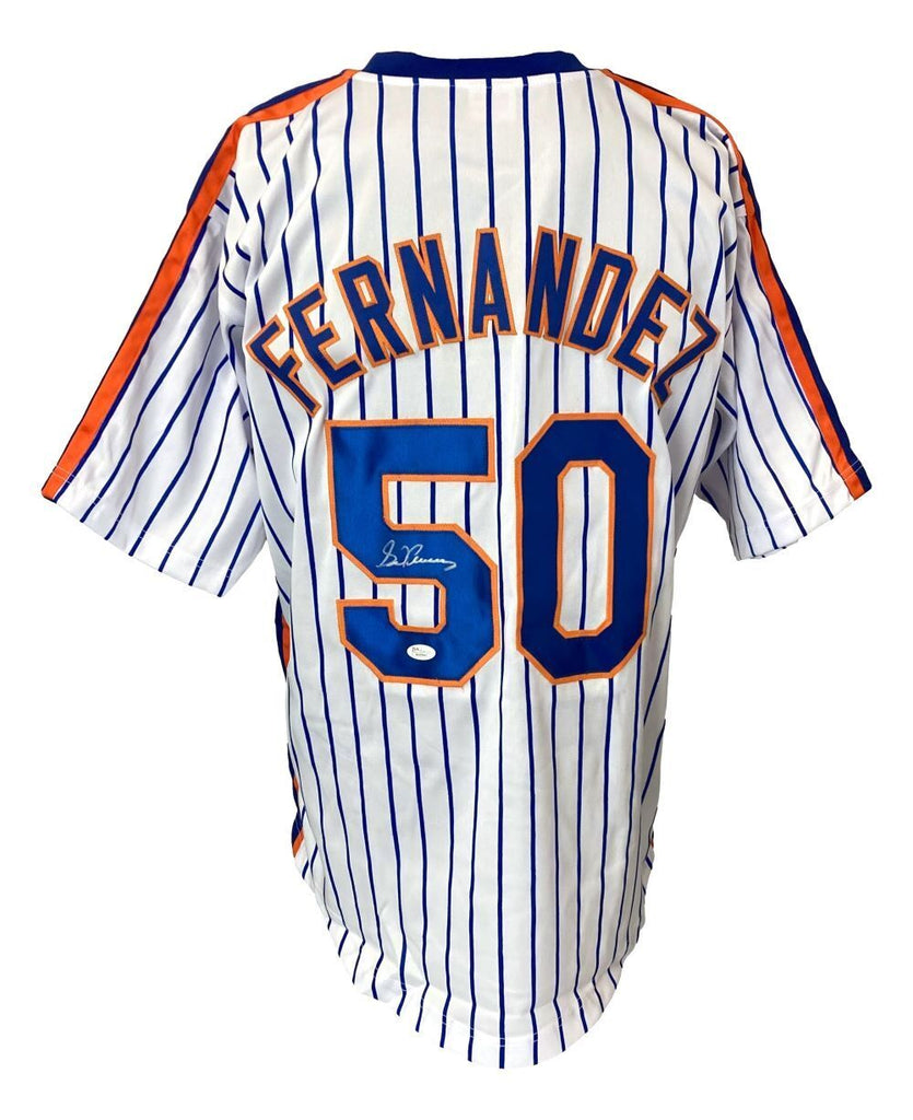 Featured is a Sid Fernandez signed custom baseball jersey. This jersey has been hand signed by Fernandez and comes with the JSA hologram and certificate of authenticity. This jersey features professionally sewn letters and numbers and is size XL. This jersey has no team tags or emblems and is intended as a sports collectible. This jersey would make a great addition to any sports memorabilia collection!. SPECIFICATIONS Autographed By: Sid Fernandez Team: New York Mets Sport: Baseball Authentication: James Spence Authentication (JSA)