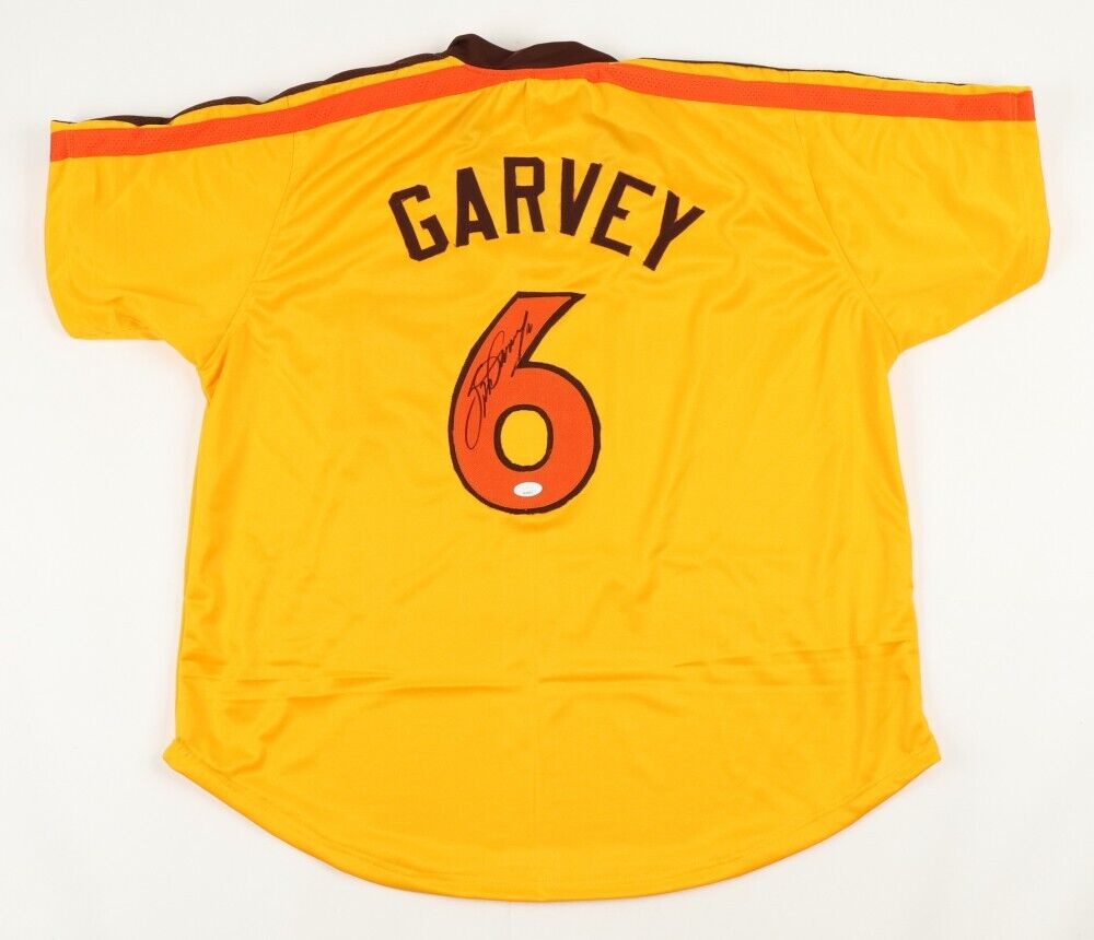 Custom on-field style jersey. Everything sewn on, size XL. Hand-signed by Steve Garvey.The lot / autograph(s) includes an official James Spence Authentication (JSA) hologram for authenticity purposes. The signing of this item was witnessed by JSA.Authentication: JSA HologramCustom on-field style jerseys are a more affordable option for autograph seekers. These jerseys do not have any brand name or tags and are made in the Philippines. They feature stitched on names and numbers and are made to look very similar to the on-field jerseys that the players wear. These custom jerseys are very commonly used in the memorabilia industry.