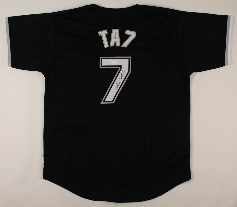 Custom on-field style jersey. Everything is sewn on, size XL. Hand-signed in black Sharpie pen by Tim Anderson. The lot / autograph(s) includes an official James Spence Authentication (JSA) hologram and matching COA for authenticity purposes. The signing of this item was witnessed by JSA.Authentication: JSA COA