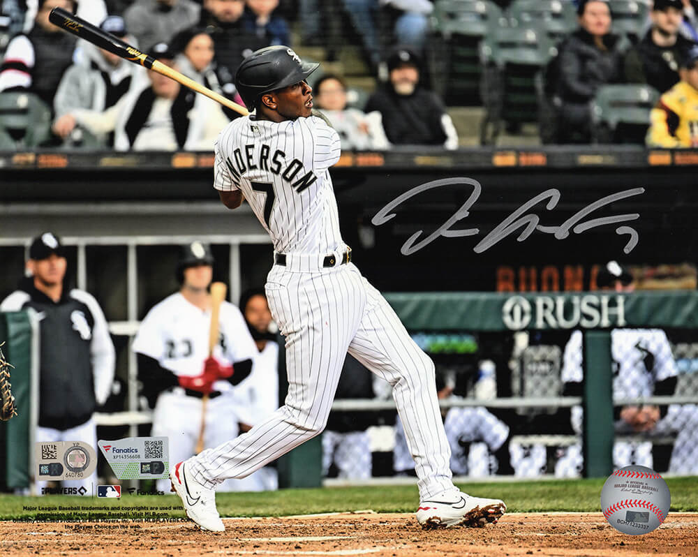 Tim Anderson signed Chicago White Sox swinging action white jersey 8x10 photo. Item comes with a MLB Authentic hologram along with a Fanatics Authentic tamper-proof numbered hologram and Certificate of Authenticity which can both be verified online.