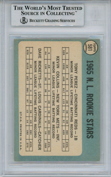 Tony Perez Autographed 1965 Topps #581 Rookie Card HOF Beckett Slab 33685 The number in the listing title is just an inventory sku for our records and is not the authentication number. The item pictured is a stock photo unless otherwise noted. This is a trading card that was personally autographed by Tony Perez. This has been professionally slabbed by Beckett Authentication Services (BAS) and includes a certificate of authenticity from Denver Autographs.