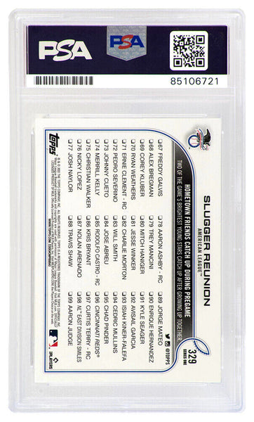 Vladimir Guerrero Jr and Wander Franco dual signed 2022 Topps sluggers reunion baseball trading card #329. The card has been authenticated and encapsulated by PSA/DNA and the number can be verified online. Vladimir Guerrero Jr Toronto Blue Jays
