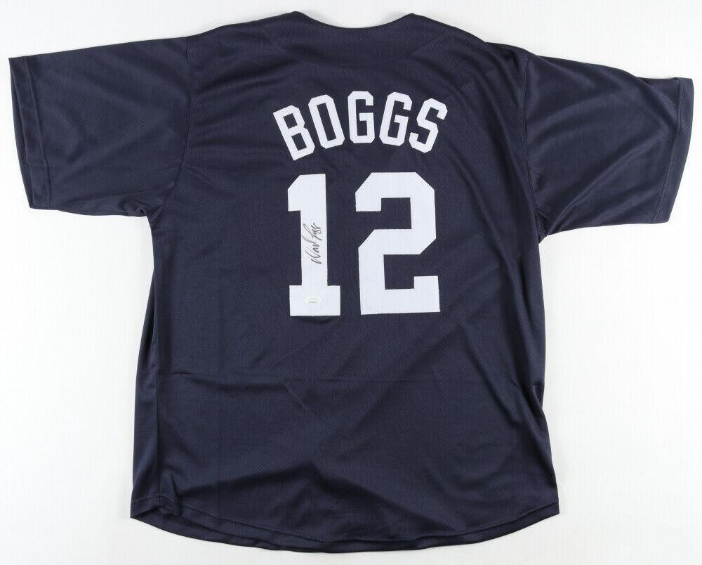 Custom on-field style jersey. Everything sewn on, size XL. Hand-signed by Wade Boggs (Red Sox, Devil Rays, HOF). The lot / autograph(s) includes an official James Spence Authentication (JSA) hologram and matching COA for authenticity purposes. The signing of this item was witnessed by JSA.Authentication: JSA COA Shop our ebay store / Friendly Confines Collectibles for thousands of different autographed jerseys
