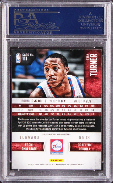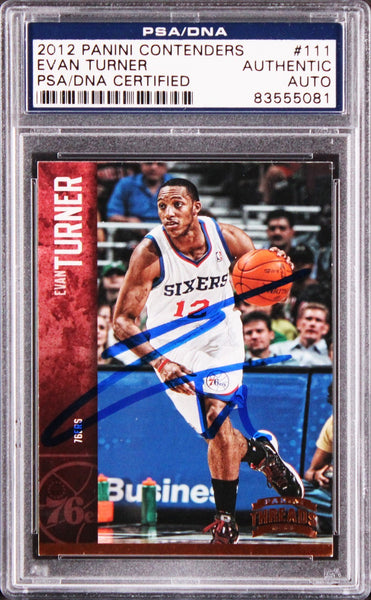 This Autographed 2012 Panini Contenders #111 Card has been Personally Signed by Evan Turner of the Philadelphia 76ers. This item is 100% Authentic, it comes slabbed and authenticated by PSA/DNA. The authenticity can be verified on Professional Sports Authenticator website.