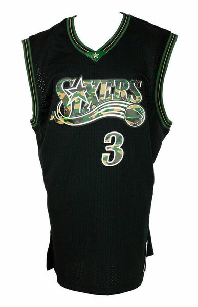 Featured is an Allen Iverson signed black and camo Philadelphia 76ers Mitchell and Ness basketball jersey. This jersey was hand signed by Allen Iverson and authenticated by PSA/DNA authentication services. Included with the jersey is a PSA/DNA hologram and certificate of authentication. This jersey would make a great addition to any sports memorabilia collection. . SPECIFICATIONS Autographed By: Allen Iverson Team: Philadelphia 76ers Sport: Basketball Authentication: Professional Sports Authenticator (PSA)