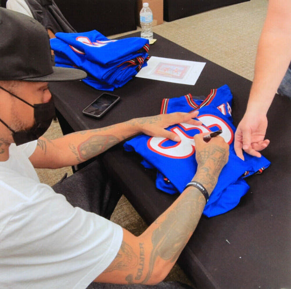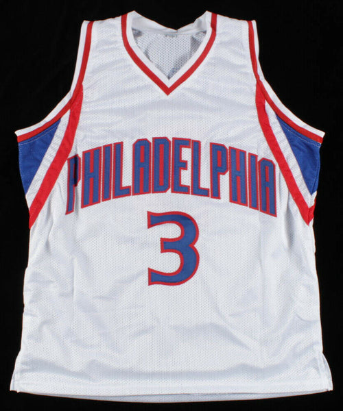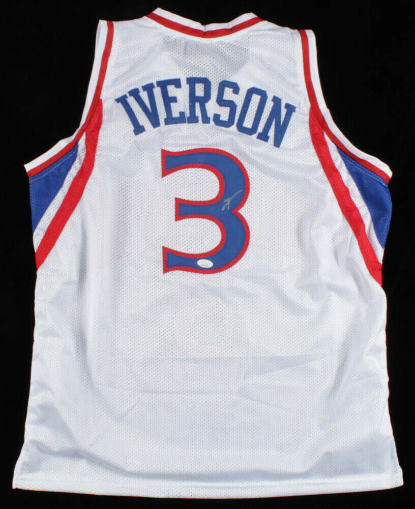 Custom on-court style jersey. Everything sewn on, size XL. Hand-signed in silver paint pen by Allen Iverson (HOF). The lot / autograph(s) includes an official James Spence Authentication (JSA) hologram for authenticity purposes.Authentication: JSA Hologram