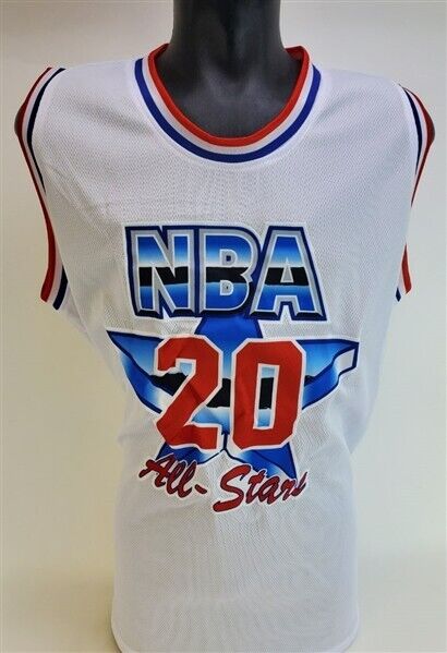This autographed custom on-court All Star game style adult XL jersey has been personally hand-signed by Alvin Robertson of the San Antonio Spurs. This autograph is certified by PSA/DNA's (Professional Sports Authenticators) In The Presence authentication. That means that a PSA representative was present when this item was signed. It comes with the PSA numbered hologram and matching Certificate of Authenticity.Custom on-court style jerseys are a more affordable option for autograph seekers. These jerseys do not have any brand name or tags and are made in the Philippines. They feature stitched on names and numbers and are made to look very similar to the on-field jerseys that the players wear. These custom jerseys are very commonly used in the memorabilia industry.Shop our ebay store / Friendly Confines Collectibles for thousands of different autographed jerseys