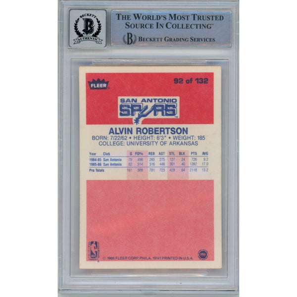 Alvin Robertson Autographed 1986-87 Fleer 92 Trading Card 10 Grade Beckett 47022