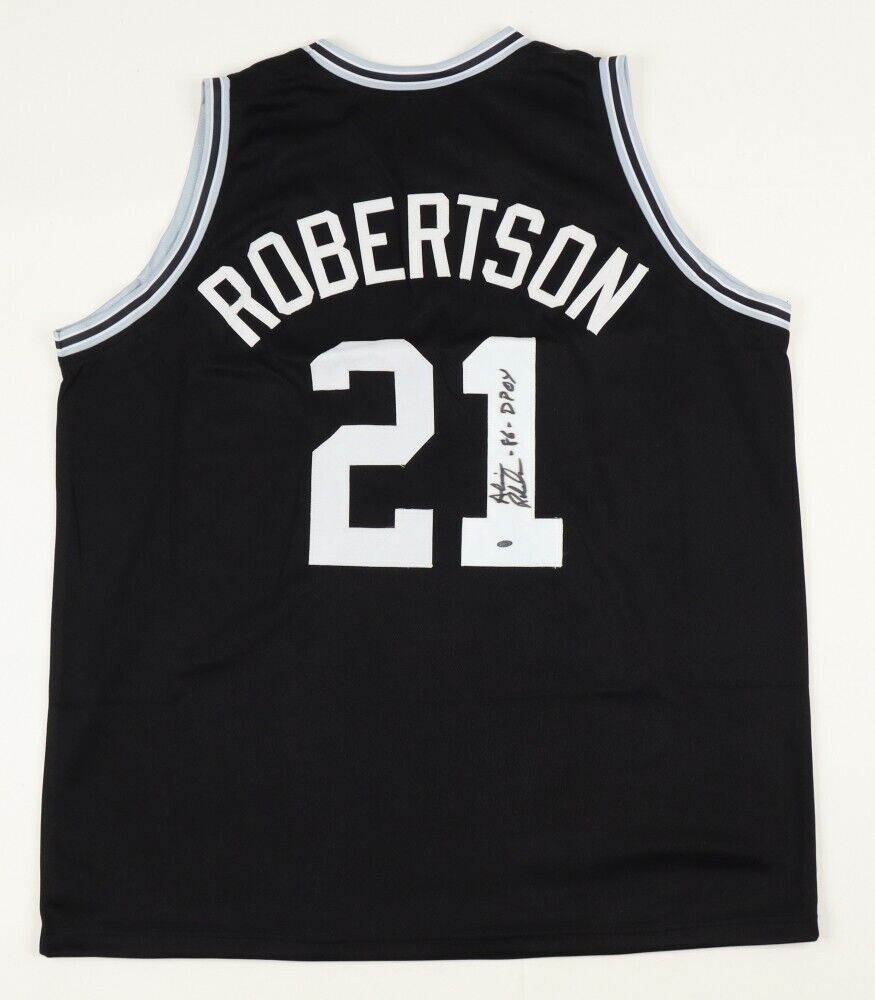 Custom on-field style jersey. Everything is sewn on, size XL. Hand-signed by Alvin Robertson.The lot / autograph(s) includes an official OK Authentics hologram for authenticity purposes. The signing of this item was witnessed by OK Authentics.Authentication: OK Authentics Hologram