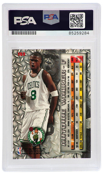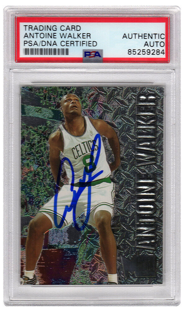 Antoine Walker signed Boston Celtics 1996-97 Fleer Metal rookie basketball trading card #153. The card has been authenticated and encapsulated by PSA/DNA and the number can be verified online.