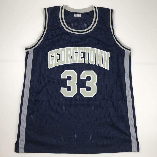 Autographed/Signed Alonzo Mourning Georgetown Blue College Basketball Jersey JSA Jersey has no brand names or logos. This is a custom jersey and was not manufactured by or in any manner associated with any professional sports league or manufacturer. This custom jersey carries no professional sports league designation. The item is intended to be an autographed collectible. The custom jersey displays the name and number of the player. This item in no way is affiliated with or connected to any professional sports organization. Size is XL.