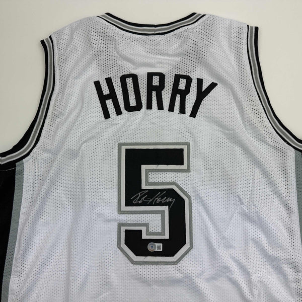 Autographed/Signed Robert Horry San Antonio White Jersey Beckett BAS COA Jersey has no brand names or logos. This is a custom jersey and was not manufactured by or in any manner associated with any professional sports league or manufacturer. This custom jersey carries no professional sports league designation. The item is intended to be an autographed collectible. The custom jersey displays the name and number of the player. This item in no way is affiliated with or connected to any professional sports organization. Size is XL.