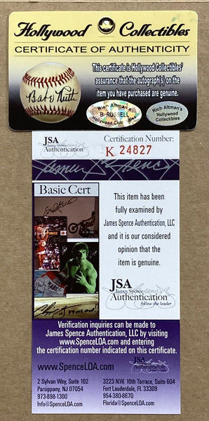 Featured is a Bill Russell and Oscar Robertson signed 8x10 photo. This photo has been hand signed by Russell and Robertson and comes with the Hollywood Collectibles hologram and certificate of authenticity (Russell) along with the JSA hologram and certificate of authenticity (Robertson). This photo has been professionally framed and matted and is approximately 11x14. This photo would make a great addition to any sports memorabilia collection! SPECIFICATIONS Autographed By: Team: Sport: Basketball Authentication: James Spence Authentication (JSA)