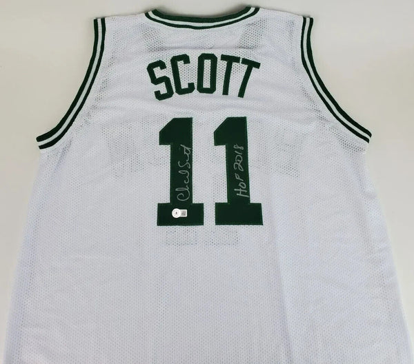 This autographed jersey has been personally hand-signed by Charlie Scott ("HOF 2018" inscription) of the Boston Celtics.This autograph is certified by Beckett Authentication Services (BAS) Witness Certification. That means that a Beckett representative was present when this item was signed. It comes with the numbered authentication hologram with a QR code card that verifies the authentication on the Beckett website.Custom on-field style jerseys are a more affordable option for autograph seekers. These jerseys do not have any brand name or tags and are made in the Philippines. They feature stitched on names and numbers and are made to look very similar to the on-field jerseys that the players wear. These custom jerseys are very commonly used in the memorabilia industry.