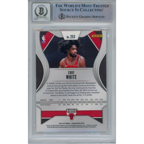 The number in the listing title is just an inventory sku for our records and is not the authentication number. The item pictured is the exact item you will receive, please see photos for condition. This is a 2019 Panini Prizm #253 Trading Card that was personally autographed by Coby White. Includes a certificate of authenticity from Beckett Authentication Services (BAS) and Denver Autographs.