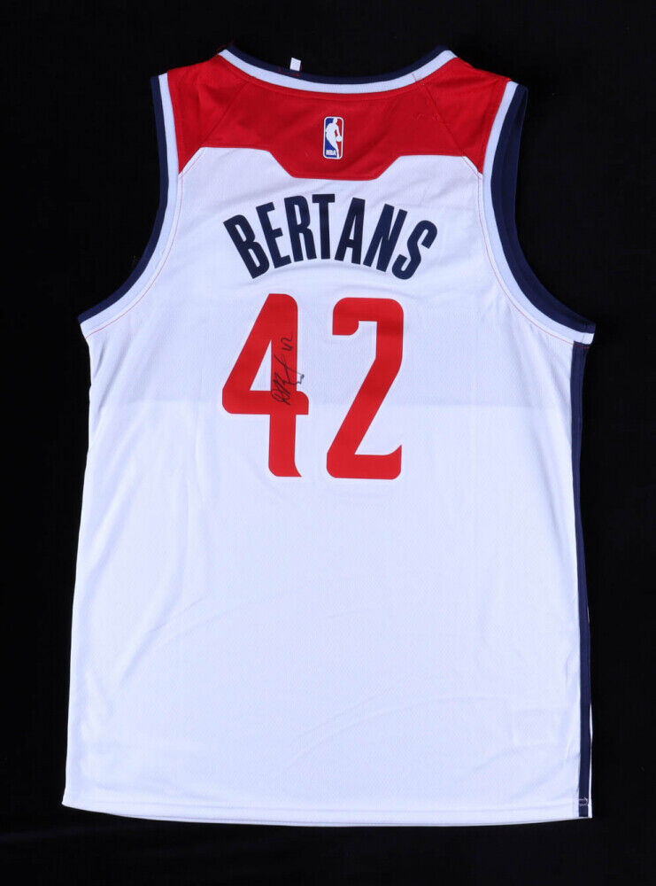 Nike on-court style jersey. Everything is printed on, size 48. Hand-signed by Davis Bertans (Washington Wizards).The lot / autograph(s) includes an official Beckett Authentication Services serially-numbered hologram and matching COA for authenticity purposes.Authentication: Beckett COA