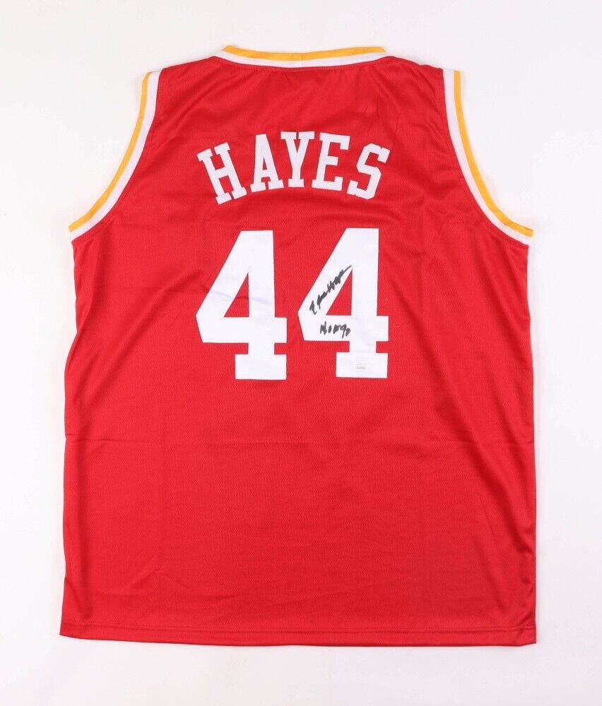 Custom on-court style jersey. Everything is sewn on, size XL. Hand-signed and inscribed by Elvin Hayes (HOF).The lot / autograph(s) includes an official James Spence Authentication (JSA) hologram and QR Code Card for authenticity purposes. The signing of this item was witnessed by JSA.Authentication: JSA Hologram & QR Code card