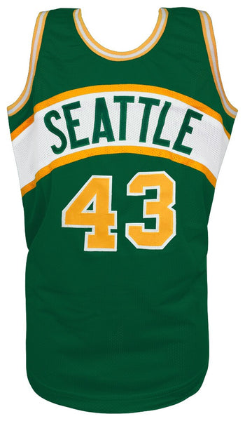 Jack Sikma signed green throwback custom basketball jersey with 'HOF 19' inscription. Item comes with a Schwartz Sports Memorabilia tamper-proof numbered hologram and Certificate of Authenticity which can be verified online. Jersey is size XL.